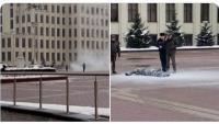 Трийсет и пет годишен мъж днес се самозапали пред сградата на беларуското правителство в Минск и беше откаран в болница, след като минувачи и полицаи го изгасиха с пожарогасител